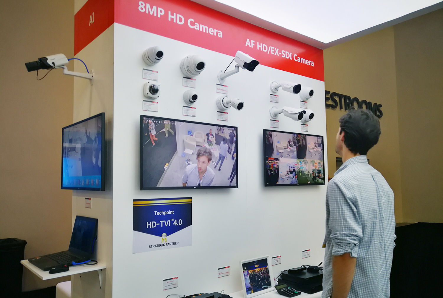 紅色靚麗的展臺,給攝像機增添了不少活力。在該展臺上,長視科技向國際買家展示了多款熱門的同軸高清系列產(chǎn)品,包括槍型機、半球機。透過顯示屏,客戶可近距離觀看并體驗各類攝像機的成像效果,直觀感受高清、紅外夜視效果,感受攝像機的魅力所在,選定最佳的解決方案。