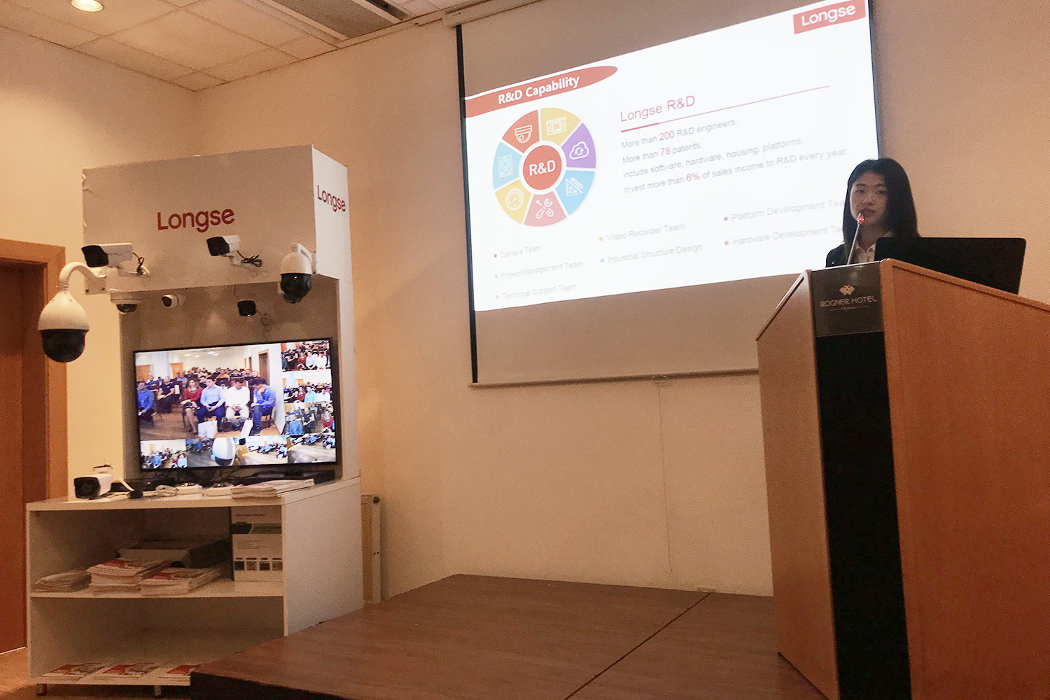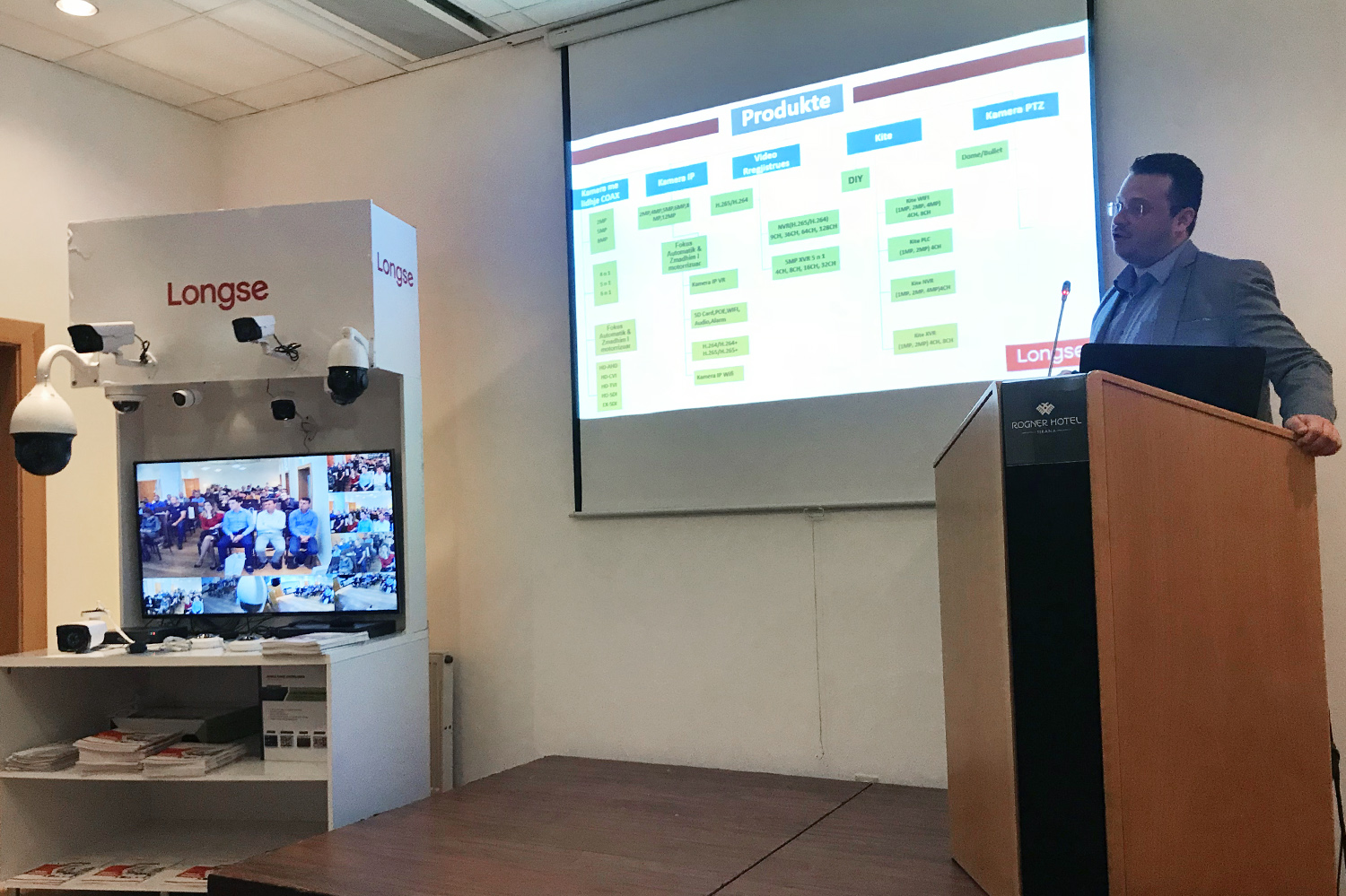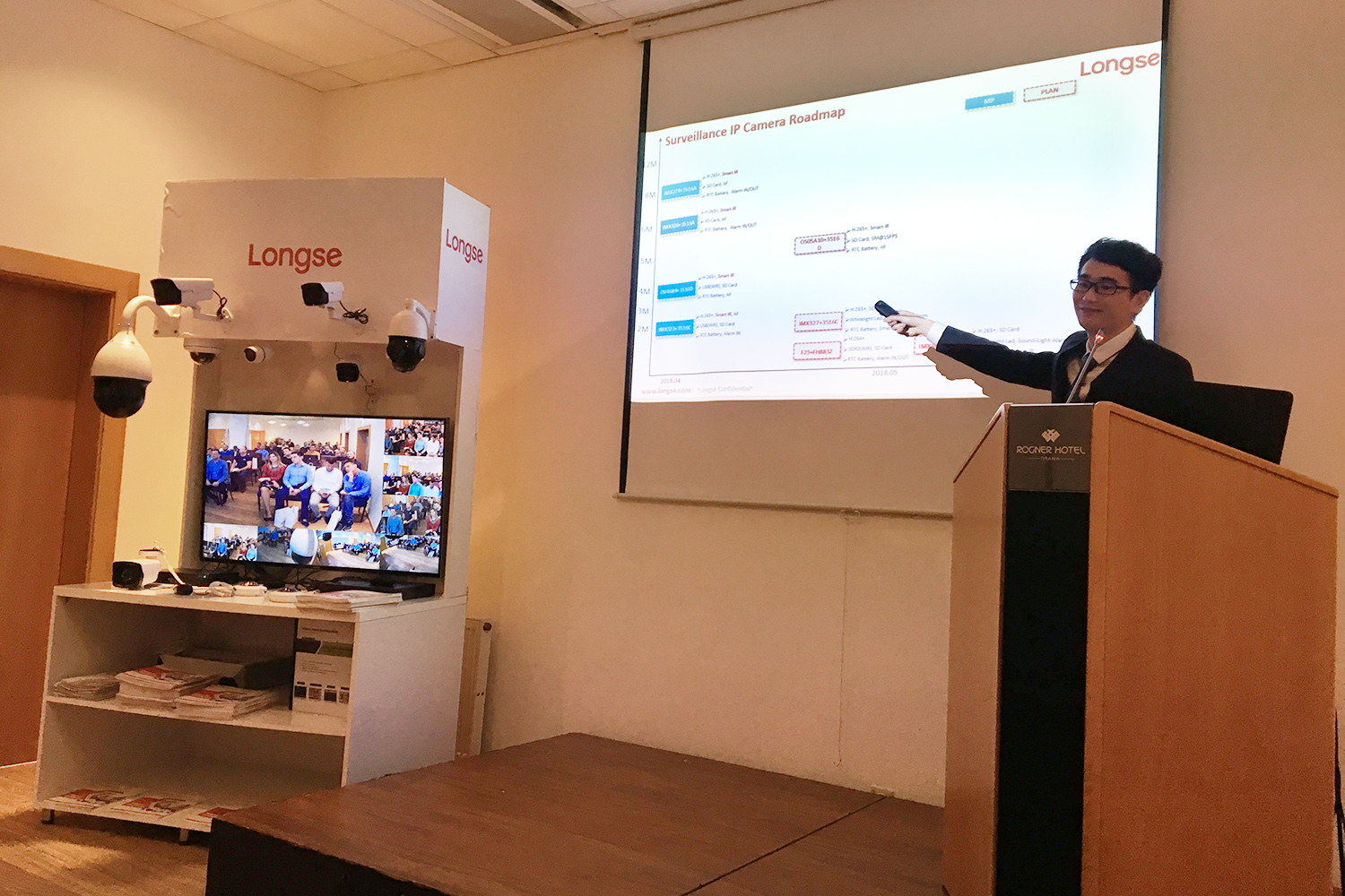 產(chǎn)品發(fā)布由長視科技2018阿爾巴尼亞代理開篇,垂直市場(chǎng)銷售工程師Ermal Sallaku為大家進(jìn)行了詳細(xì)解讀,重點(diǎn)介紹了PT球系列(PT5A、PT7E系列)、DIY套裝(Kits)、NVR系列、網(wǎng)絡(luò)高清系列(LBB60/90系列)、同軸高清系列(LBN24、LVWDC20系列)等明星級(jí)產(chǎn)品以及安防行業(yè)的前沿技術(shù)。在發(fā)布會(huì)過程中,展臺(tái)中的明星級(jí)攝像機(jī)發(fā)揮渾身解數(shù),在現(xiàn)場(chǎng)透過熒屏呈現(xiàn)高清盛宴,還原了會(huì)場(chǎng)燈光、顏色、人臉等細(xì)節(jié),讓與會(huì)合作伙伴深度及直觀地享受和了解2018年的最新產(chǎn)品與效果。