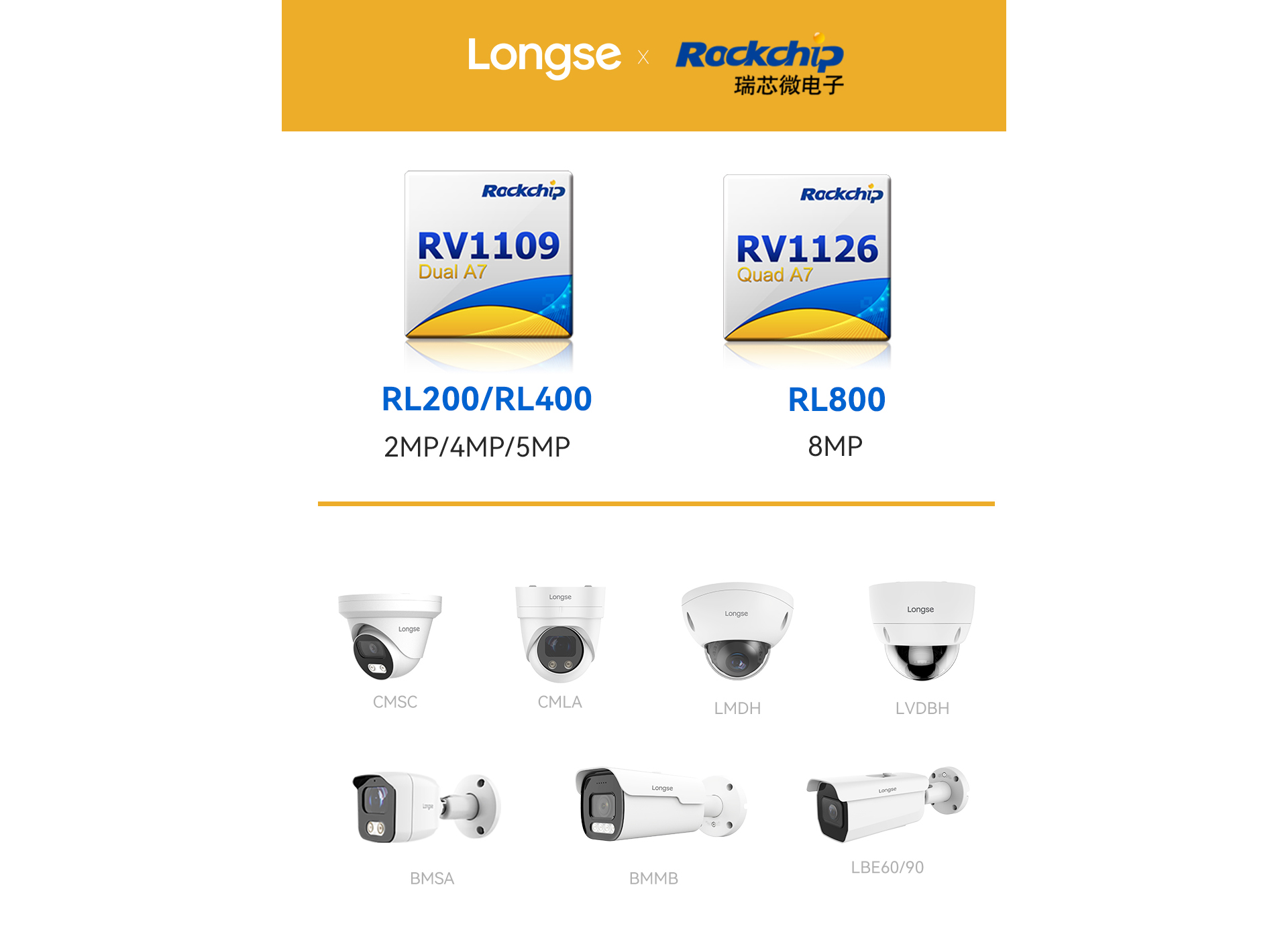 長視科技聯(lián)合瑞芯微推出RV1126/RV1109智能AI攝像頭,產(chǎn)品線涵蓋200萬/400萬/800萬的定焦及變焦IPC。