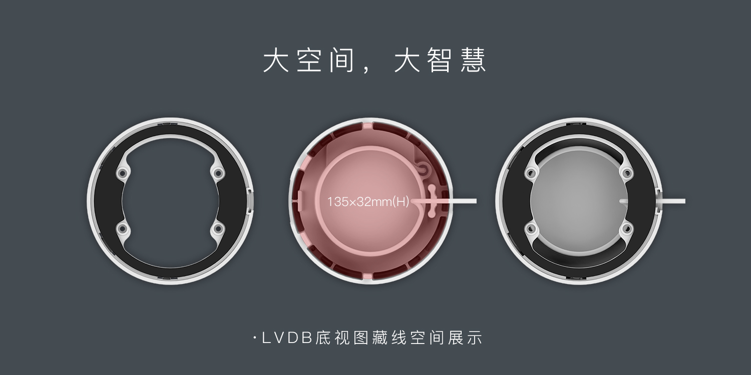 藝術與體驗的融合,方可彰顯優(yōu)異的工匠精神。在LVDB監(jiān)控新外殼的設計中,底座的加高,能為線材提供135*32mm(H)的空間,藏于底座之下,美觀掌控,心有所動。此外,線材外露的減少,還能減少與水的接觸機會,增強其使用中帶來的安全性。