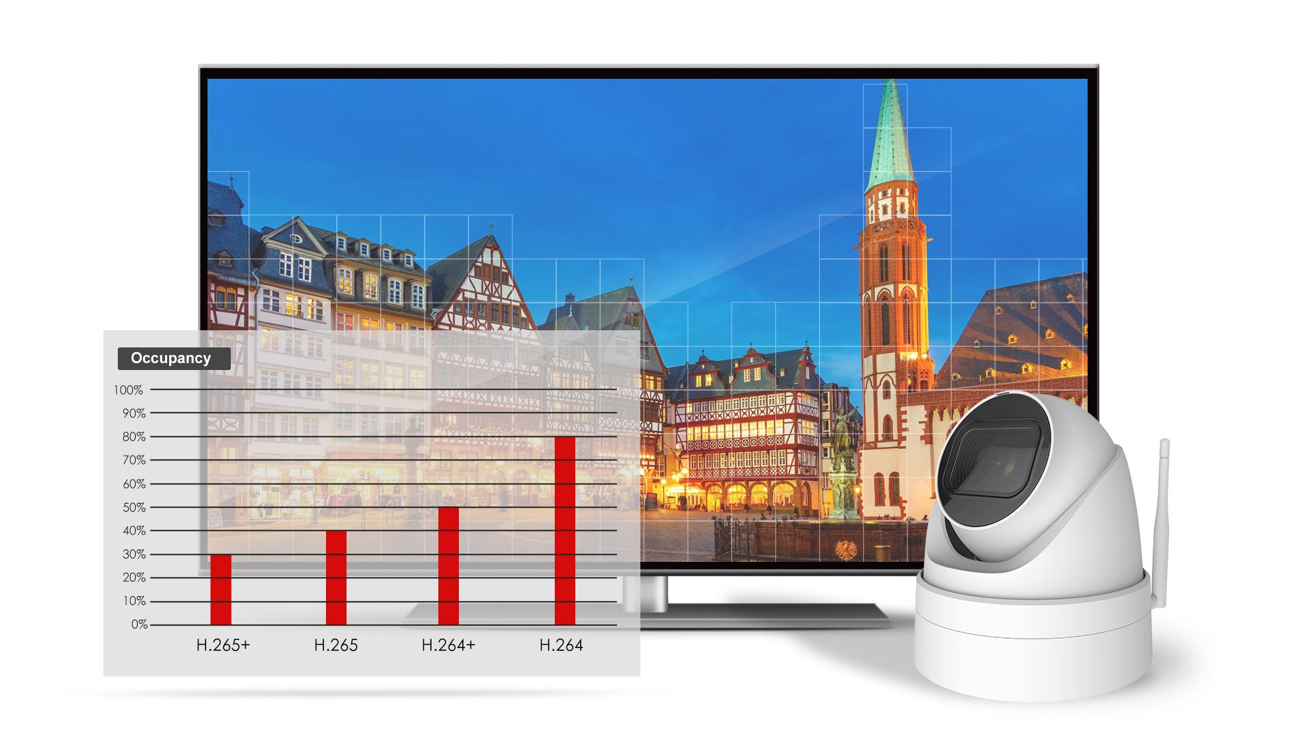 由長視200萬Wi-Fi網(wǎng)絡(luò)攝像機(jī)支持的H.265+、H.265、H.264+、H.264編碼標(biāo)準(zhǔn),
